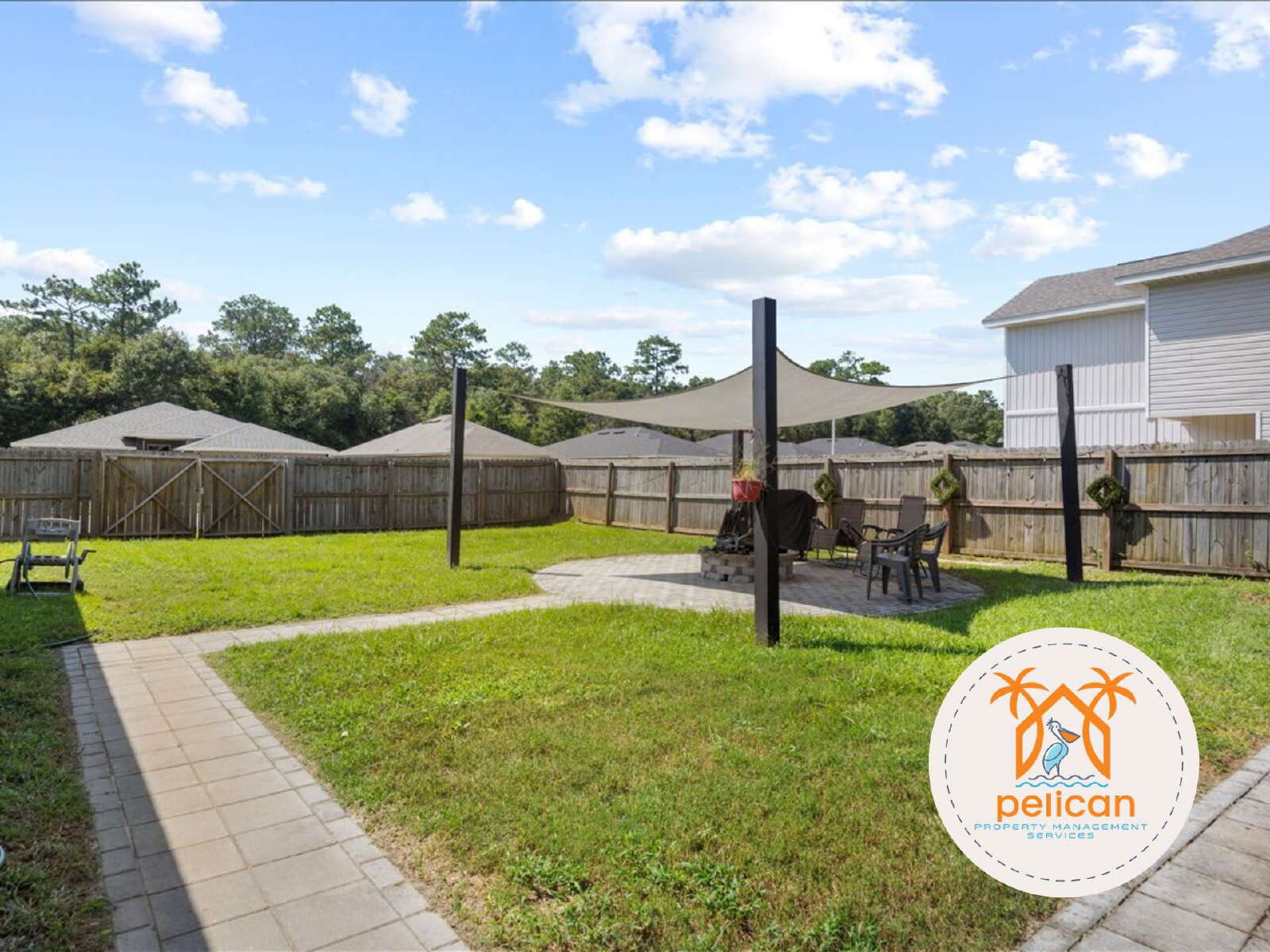 The well-appointed kitchen features granite countertops and stainless steel appliances and opens seamlessly to the living area, making it perfect for everyday living and entertaining. Step outside to enjoy a private backyard retreat complete with a paver patio, shaded seating area, and a custom brick fireplace makes it ideal for relaxing evenings or hosting guests.